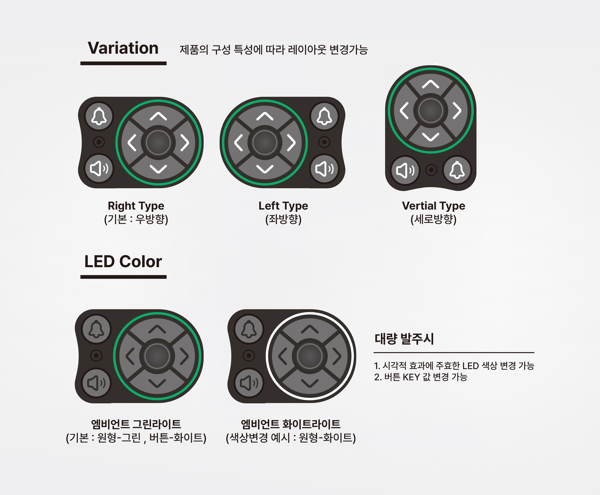 어떤 방향으로든 KIOSK 제작사의 장비 컨셉에 맞게 설치위치에 따라 버튼 탈부착으로 가변 설치가 가능 하며 , 독립적 개별 버튼으로도 제작이 가능합니다. |